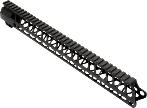 The Timber Creek Enforcer Handguard features a slim lightweight design integrated with modular flexibility. It is constructed of billet aluminum with full length Mil-Spec Picatinny rail. The Enforcer Handguard is compatible with your AR-15 upper and requires a low profile gas block. *Note- Barrel nut not included.